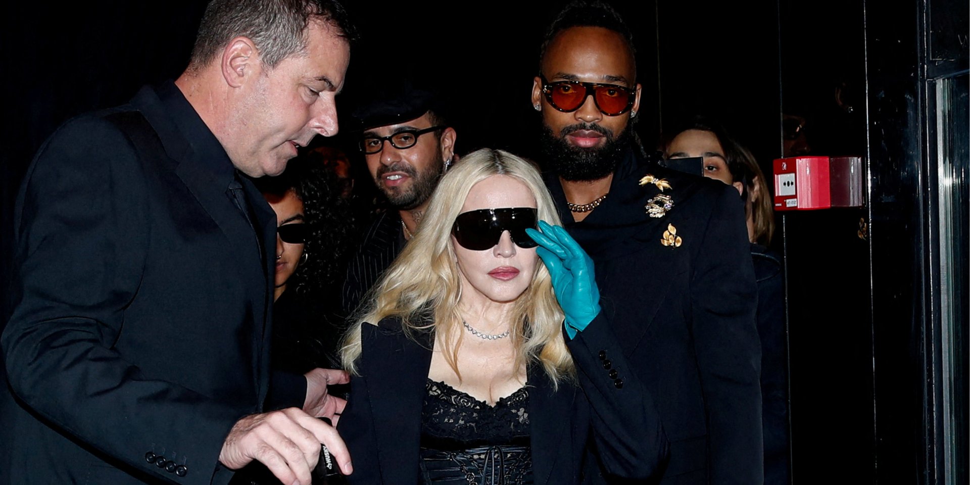 Мадонну супроводжував її 29-річний бойфренд Акім Морріс, який доповнив свій total black образ діамантовим кольє-чокером і великими сонцезахисними окулярами.
